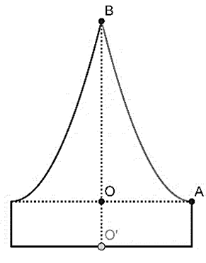 Chuẩn bị cho đêm hội diễn văn nghệ chào đón năm mới, bạn Minh Hiền đã làm một chiếc mũ “cách điệu” cho ông già Noel có dáng một khối tròn xoay. Mặt cắt qua trục của chiếc mũ như hình vẽ bên. Biết rằng \[OO' = 5\]cm, \[OA = 10\]cm, \[OB = 20\]cm, đường cong \[AB\] là một phần của parabol có đỉnh là điểm \[A\]. Thể tích của chiếc mũ bằng: