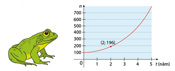 Hàm số biểu diễn số lượng ếch sau \(t\) năm kể từ khi chúng xuất hiện trong ao là
