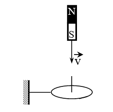 Xác định chiều dòng điện cảm ứng trong vòng dây khi nhìn vào mặt trên trong trường hợp cho nam châm rơi thẳng đứng xuyên qua tâm vòng dây giữ cố định như hình vẽ: