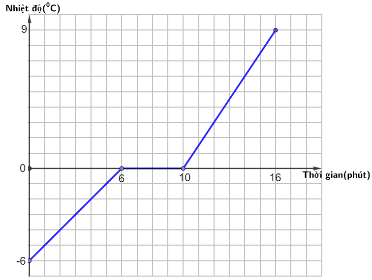 Từ phút thứ 6 đến phút thứ 10 là thời gian nước đá nóng chảy.