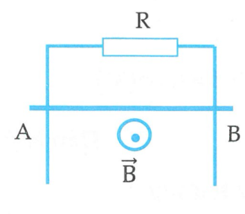 Hai thanh kim loại song song, thẳng đứng có điện trở không đáng kể, một đầu nối vào điện trở R = 0,5Ω. Một đoạn dây dẫn AB, độ dài l = 14cm, khối lượng m = 2g, điện trở r = 0,5Ω tì vào hai thanh kim loại tự do trượt không ma sát xuống dưới và luôn luôn vuông góc với hai thanh kim loại đó. Toàn bộ hệ thống đặt trong một từ trường đều có hướng vuông góc với mặt phẳng hai thanh kim loại có cảm ứng từ B = 0,2T. Lấy g = 9,8m/s2.