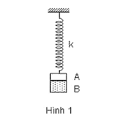 Hai vật A, B dán liền nhau mB = 2mA = 200g, treo vào một lò xo có độ cứng k = 50N/m, hình 1. Nâng vật lên đến đến vị trí lò xo có chiều dài tự nhiên l0 = 30cm thì buông nhẹ. Vật dao động điều hoà đến vị trí lực đàn hồi của lò xo có độ lớn lớn nhất, vật B bị tách ra. Tính chiều dài ngắn nhất của lò xo.