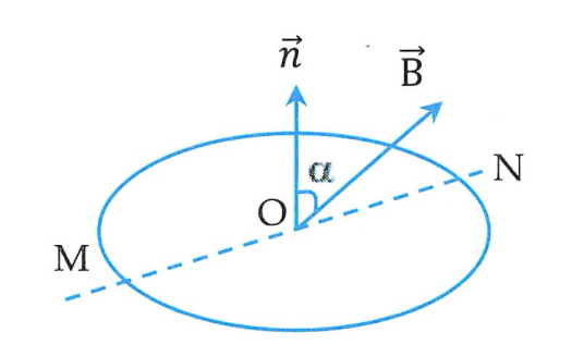 Một khung dây hình tròn diện tích S = 15cm2 gồm N = 10 vòng dây, đặt trong từ trường đều có B → hợp với véctơ pháp tuyến n → của mặt phẳng khung dây một góc a = 30o như hình vẽ. Biết B = 0,04T. Tính độ biến thiên của từ thông qua khung dây khi quay khung dây quanh đường kính MN một góc 180o.