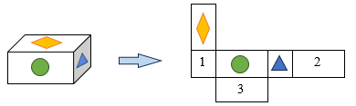 b) Các mặt đối diện của hình hộp chữ nhật dưới đây có hình giống nhau. Ta cần hình gì ở các mặt được đánh số trong hình khai triển.
