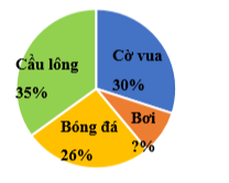 Kết quả điều tra về môn thể thao yêu thích nhất của các học sinh khối 5 của trường Tiểu học Bình Minh được cho trong biểu đồ hình quạt tròn dưới đây: